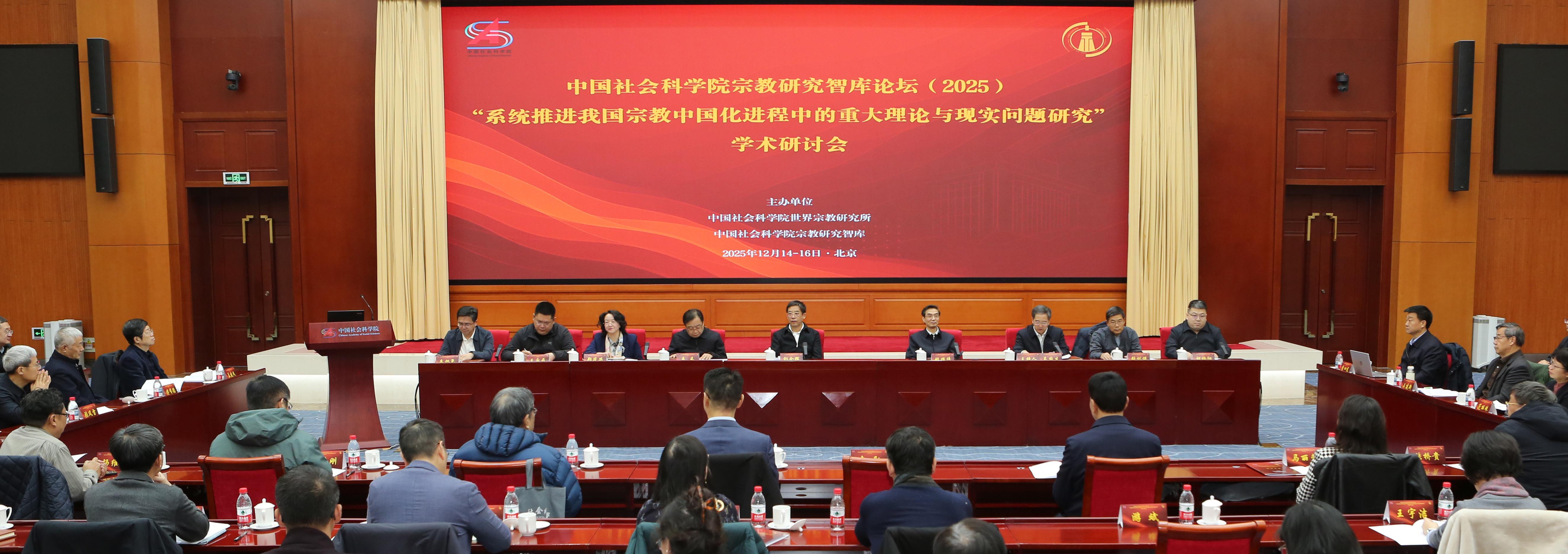 12月15—16日,中国社会科学院宗教研究智库论坛(2025)——“系统推进我国宗教中国化进程中的重大理论与现实问题研究”学术研讨会在京召开。中国社会科学院副院长、党组副书记彭金辉,中央社会主义学院党组副书记、副院长姚植传,国家宗教事务局副局长秦禾等出席论坛。
