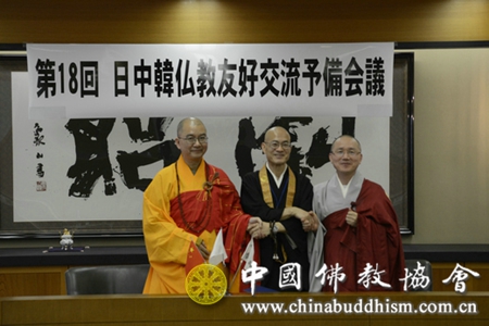 25日上午,第十八次中韩日佛教友好交流日本大会预备会议在立正佼成会京都教会举行。经协商,以“回归原点——构筑心灵的和平”为主题的第十八次中韩日佛教友好交流日本大会将于2015年9月14日至16日在日本广岛举行。武觉超理事长、学诚副会长、韩国月道事务总长先后发言,一致表示将巩固和发展由中国佛教协会已故赵朴初会长倡导的中韩日三国佛教“黄金纽带”关系,促进三国世代友好,维护亚洲及世界和平。