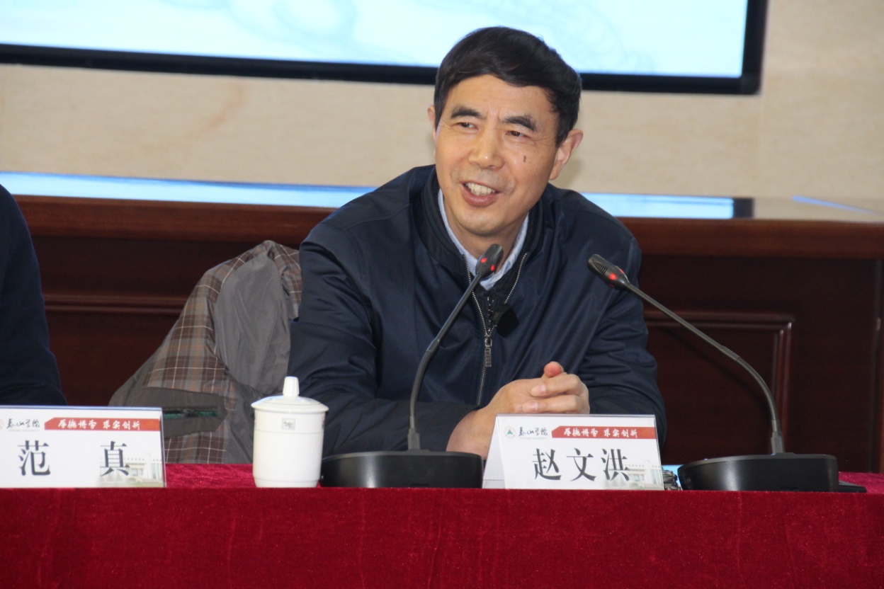 范真书记首先向大家详细介绍了泰安学院的历史与现状、发展目标、发展规划以及发展的特色和优势,特别介绍了泰山学院几代学者执着于泰山研究的情况,同时真诚邀请专家学者们常来泰山学院进行学术支持和交流。