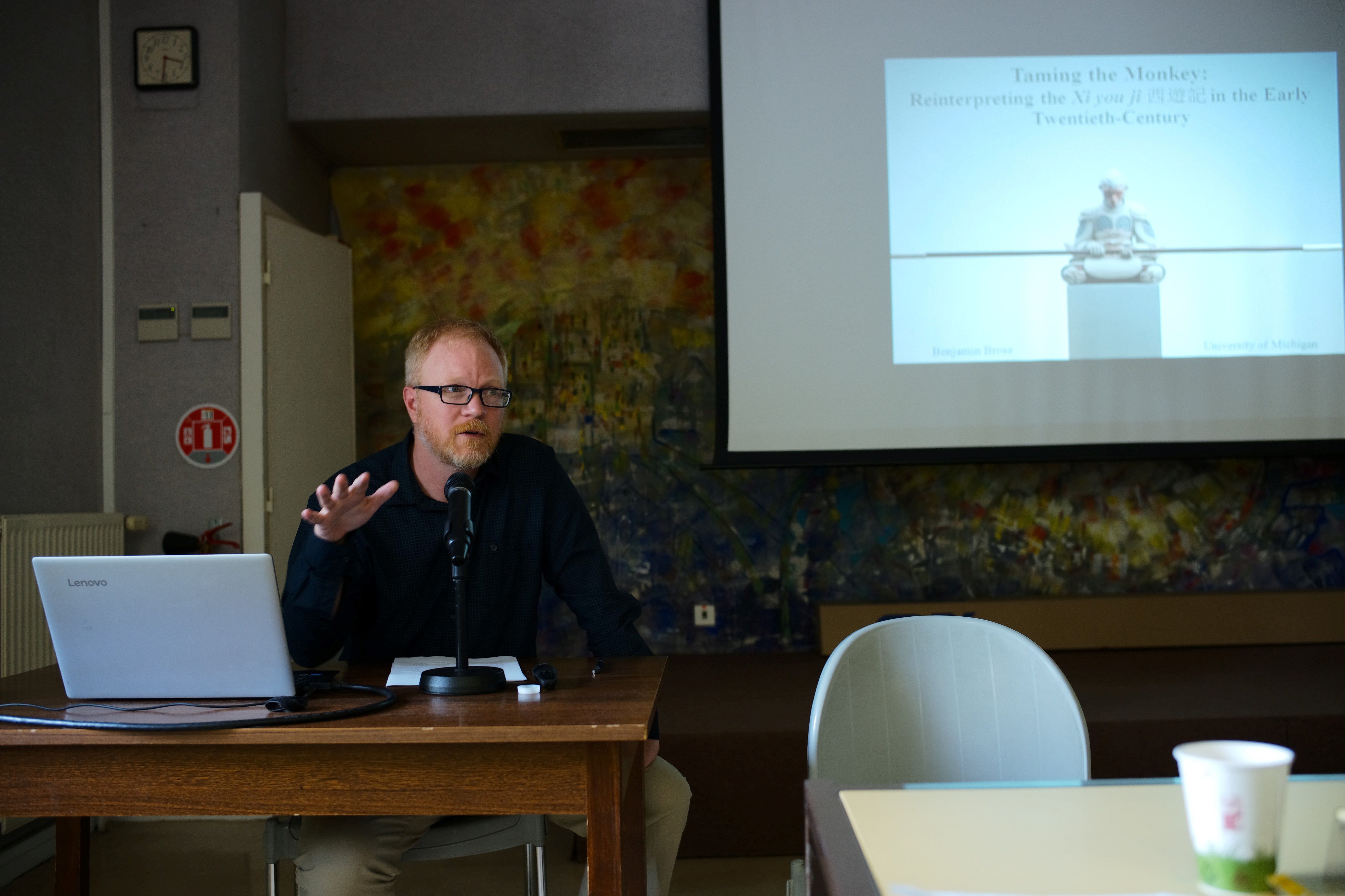 密歇根大学(University of Michigan)的本博泽(Benjamin Brose)老师分享了他对《西游记》的仪式功能的有趣解读。在现有的宗教仪式中,孙悟空时常作为神灵出现。这并非是当代的新现象,《西游记》本就具备这种宗教功用。本博泽详细梳理了《西游记》在西方世界的接受史和近代中国改革者们对《西游记》定位阐释的过程,在这一过程中,《西游记》原有的宗教属性和仪式功能逐渐消失,最终成为纯粹的世俗小说消遣读物,孙悟空在民间的形象也愈发娱乐化。
