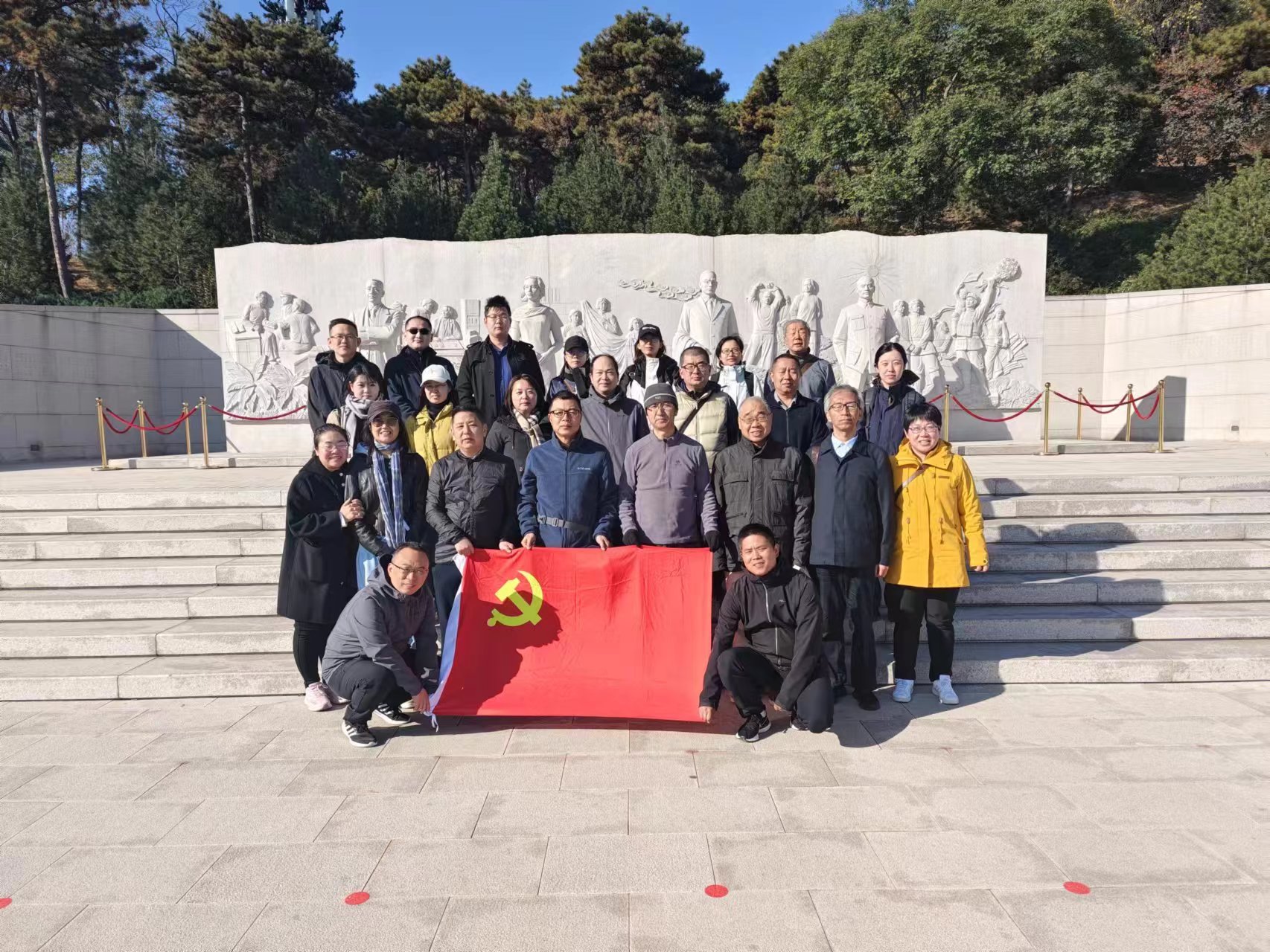大家一路谈笑风生,一边畅谈感悟,一边欣赏红叶层岭层林尽染自然美景。在无名英雄纪念广场前,大家祭奠缅怀烈士,默读毛泽东同志题诗和《追魂》《光影》匾文,追忆那段尘封的历史,探寻英雄生前的故事,深深体验着“真实的爱”与“伟大的感情”,更加坚定了对马克思主义的信仰,对中国特色社会主义的信念,对实现中华民族伟大复兴中国梦的信心。攀至山顶,大家远眺着北京城市地平线上的壮丽景色,俯瞰西山优美的自然环境,感受到了大自然和城市的完美融合、现代都市与自然和谐共存的美好景观。