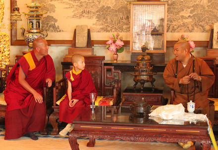 佛教在线北京讯 2010年6月26日上午,青海塔尔寺第五世却西仁波切一行到北京灵光寺参访并参拜佛牙舍利塔,灵光寺方丈常藏法师热情的接待了却西仁波切一行,双方并亲切座谈交流。