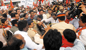 印度东部西孟加拉邦首府——加尔各答的数百名抗议反伊斯兰的《穆斯林的无知》电影的示威者,企图突破通往美国文化中心的警察阻拦。