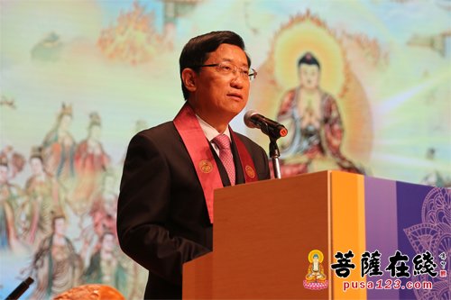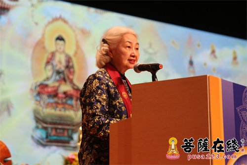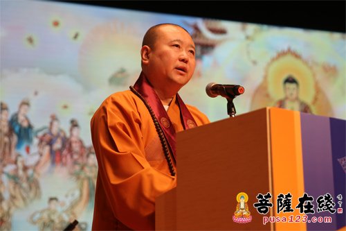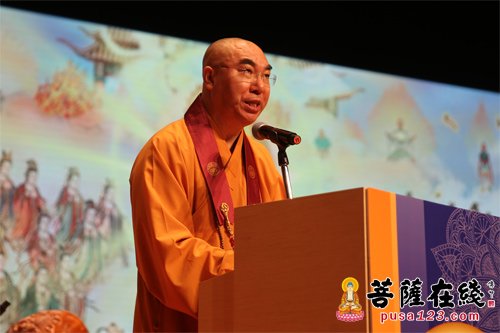 香港西方寺住持宽运法师宣读香港佛教联合会会长智慧长老致辞
