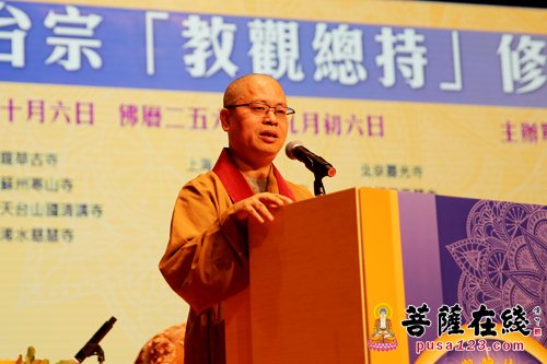 2016年10月6日,首届天台宗“教观总持”修学论坛在香港湾仔伊利沙伯体育馆举行。论坛开始前,举行了庄严而又隆重的诵经法会,由香港观宗寺方丈宏明法师、天台山国清寺方丈允观法师、宁波七塔禅寺方丈可祥法师、浙江宁波金峨禅寺住持慧明法师、台湾秀峰山静修禅院住持常原法师、浙江温州妙果寺方丈达照法师、甘肃武威鸠摩罗什寺住持理方法师共同主法,带领全场与会大众虔诚恭诵妙法莲华经。10时30分,首届天台宗“教观总持”修学论坛正式开幕。