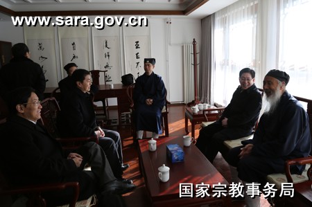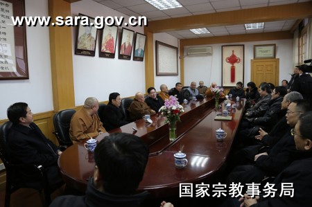 国家宗教事务局讯 2月4日,在新春佳节来临之际,国家宗教局局长王作安,副局长蒋坚永、张乐斌一行到在京的中国佛教协会、中国道教协会、中国伊斯兰教协会、中国天主教爱国会和中国天主教主教团,与中国佛教协会会长传印、中国道教协会会长任法融、中国伊斯兰教协会会长陈广元、中国天主教爱国会主席房兴耀、中国天主教主教团主席马英林等宗教界人士进行座谈,听取他们关于新一年的工作安排及意见建议,并看望慰问了各全国性宗教团体机关工作人员,向他们致以节日问候和新春祝福。