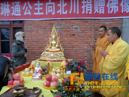 佛教在线四川讯 2010年12月23日,在中泰两国建交三十五周年之际,泰国诗琳通公主向北川捐赠佛像交接仪式在北川国恩寺隆重举行。泰国国务部长翁阿·兰派汶,泰国驻成都总领事孙建功先生,泰国长老率领的代表团一行30人,及北川羌族自治县政协副主席罗华明,北川羌族自治县梓墚寺住持、北川县佛教协会副会长隆续法师,北川国恩寺监院德胜法师等出席了当日的赠送仪式。捐赠仪式由德胜法师主持。